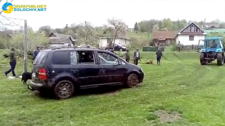 29 квітня очевидці повідомляють “Золочів.нет”, що люди намагаються витягнути автомобіль з мулу.