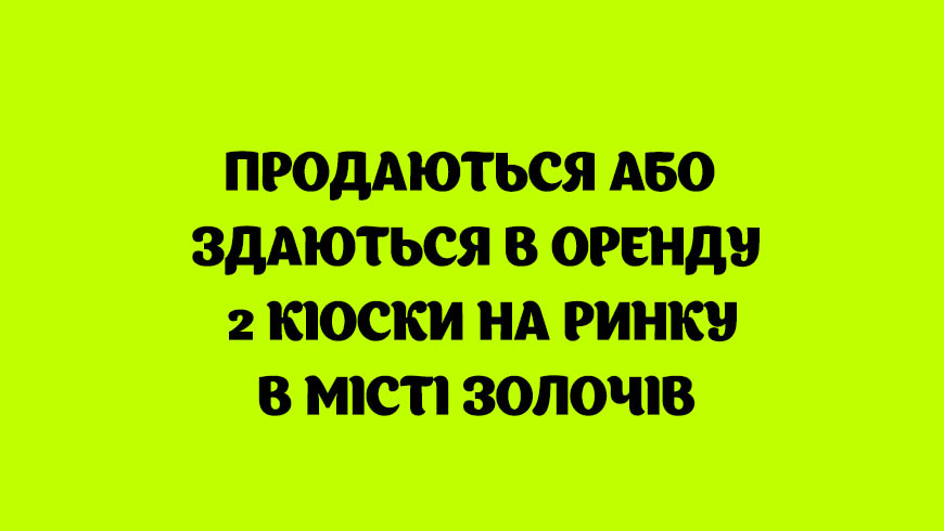 Продаються або здаються в оренду два кіоски на ринку в місті Золочів площею 40 м², металево-пластикові вікна і двері. Ціна договірна. Телефон для контактів: 0671359391 – Марія.