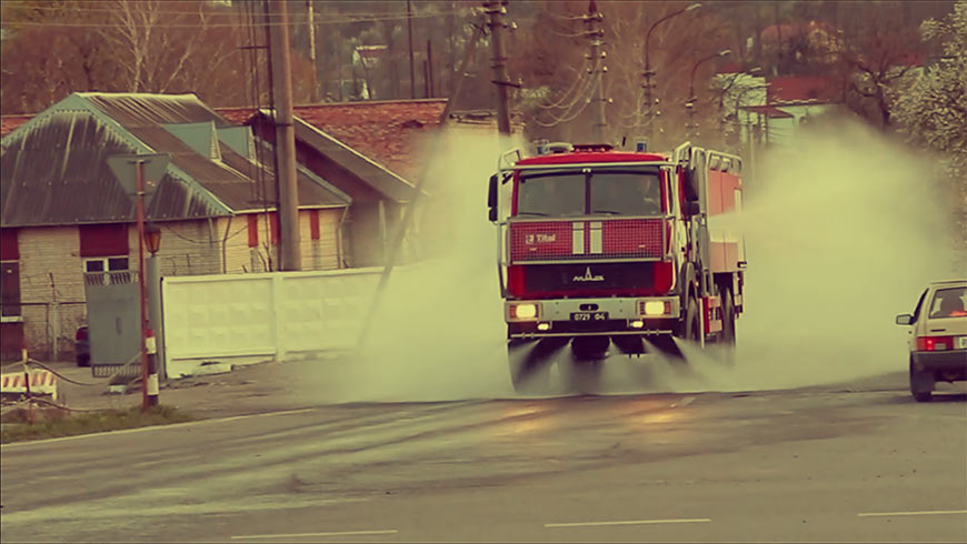 Також пресслужба Навчального центру виклала у Фейсбук відео, де відзнято, як проводилася дезінфекція та повідомила, що було залучено спеціальну техніку АЦ 1260 МАЗ.