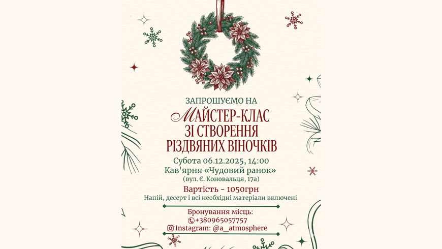Запрошуємо на майстер-клас зі створення різдвяних віночків